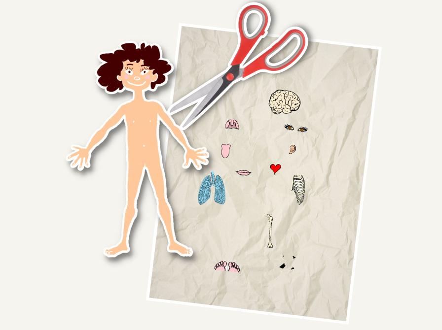 - Klip alle delene ud på arket med kroppens dele.